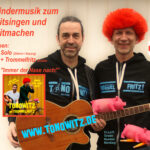 TONOWITZ spielt solo oder zusammen mit TROMMELFRITZ, gelegentlich auch mit TASTENBLITZ oder als Trio mit beiden. Üblicherweise sind 45 bis maximal 60 Minuten Spielzeit für das junge Publikum optimal.
